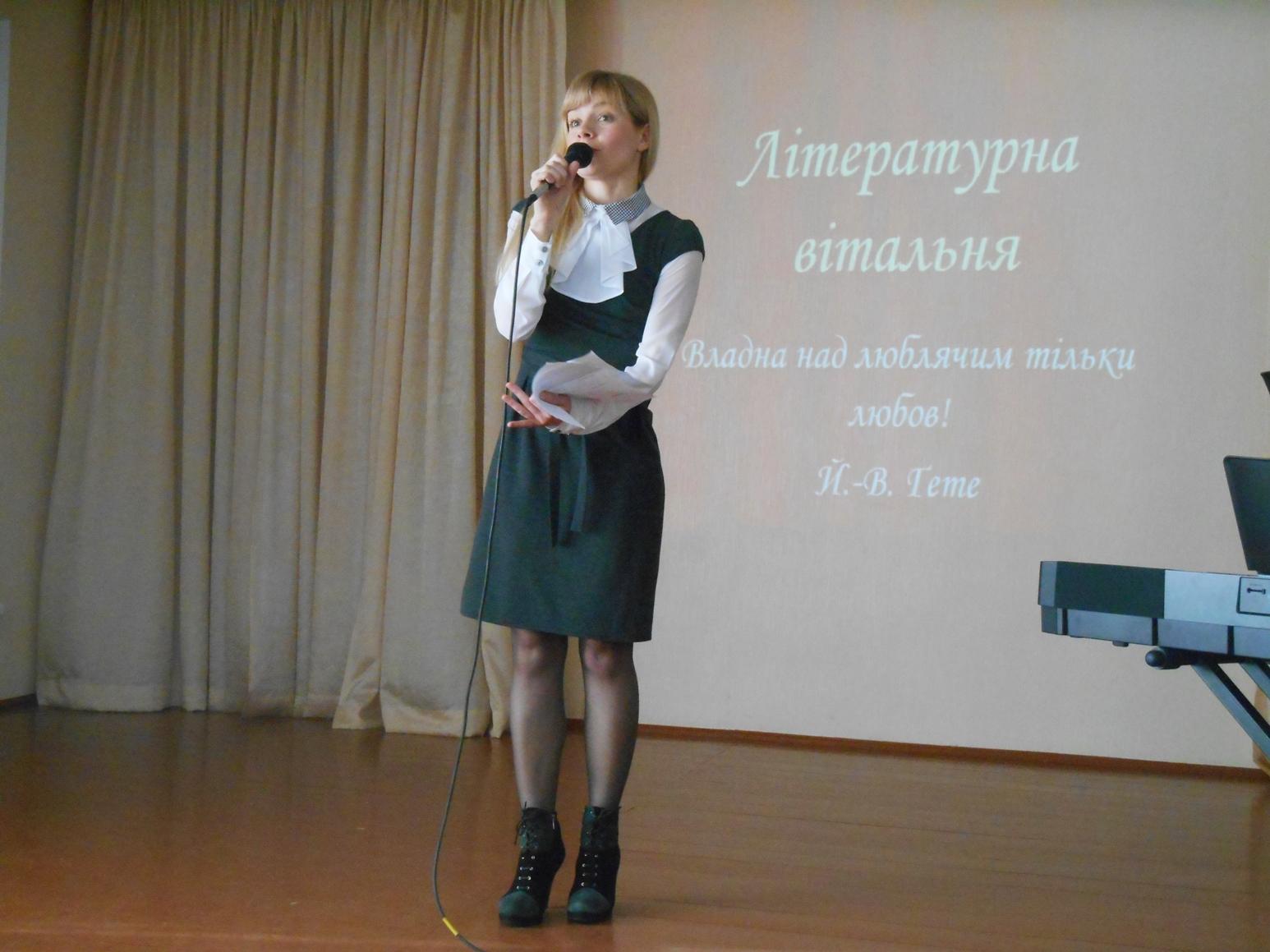 Зустріч була відкрита романсом «Калитка» у виконанні вчителя фізичної культури Горохової О.В. Запрошені поринули у вечірній парк, відчули романтичну атмосферу побачення. Поетично обдаровані ліцеїсти читали власні твори про кохання. Надзвичайно пронизливими були поезії Федишиної Ліліт, Глебської Маргарити та Мішеніної Діани. Гостями вітальні стали молодий літератор Миколаєва Ольга Сквирська та композитор-початківець Сергій Бутенко. Їх композиція «Три желтых сна» випромінювала надзвичайне світло, духовну піднесеність. Зачаровані слухачі затамували подих, вражені силою мистецтва та професіоналізмом виконавців. Подарунком гостям став хореографічний романс «Белой акации гроздья душистые» у виконанні учениці 10-А класу Левченко Ірини та її партнера.
